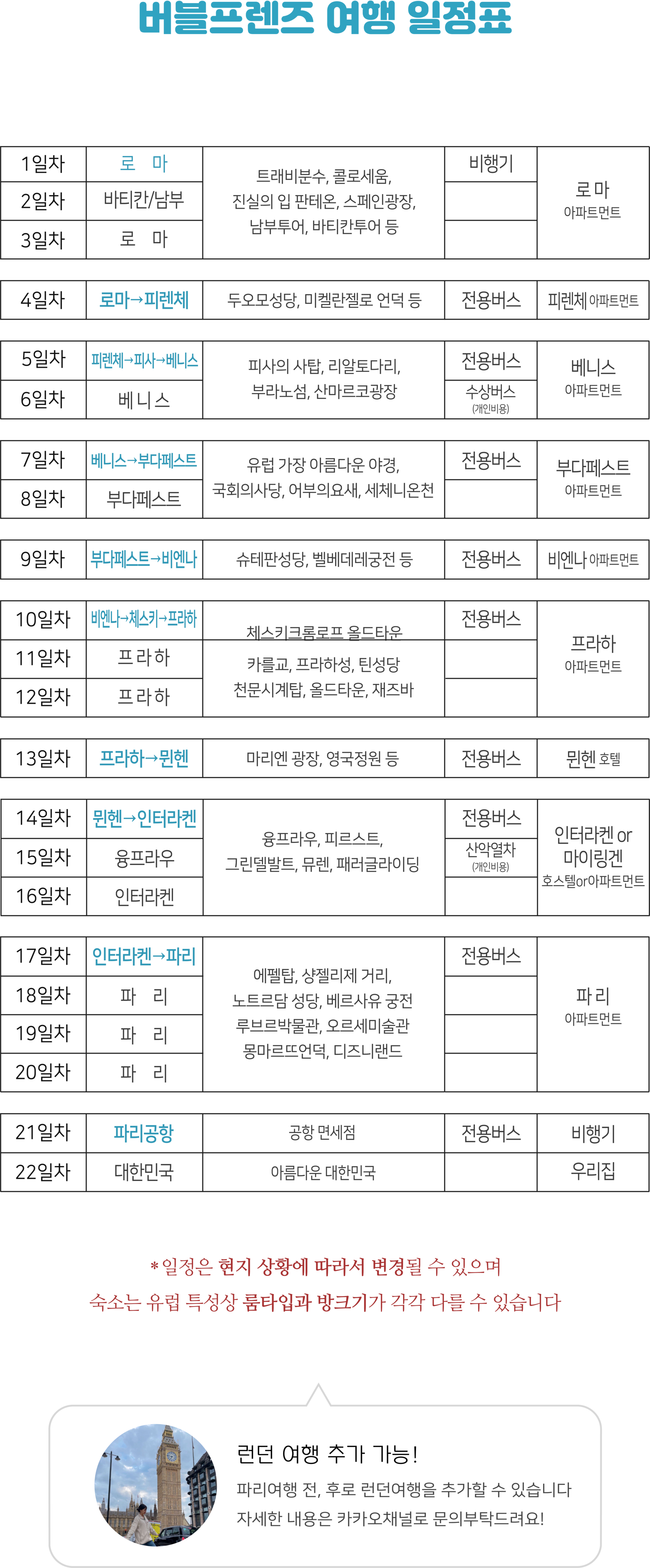 버블프렌즈 유럽여행은 어떻게 다른가요?