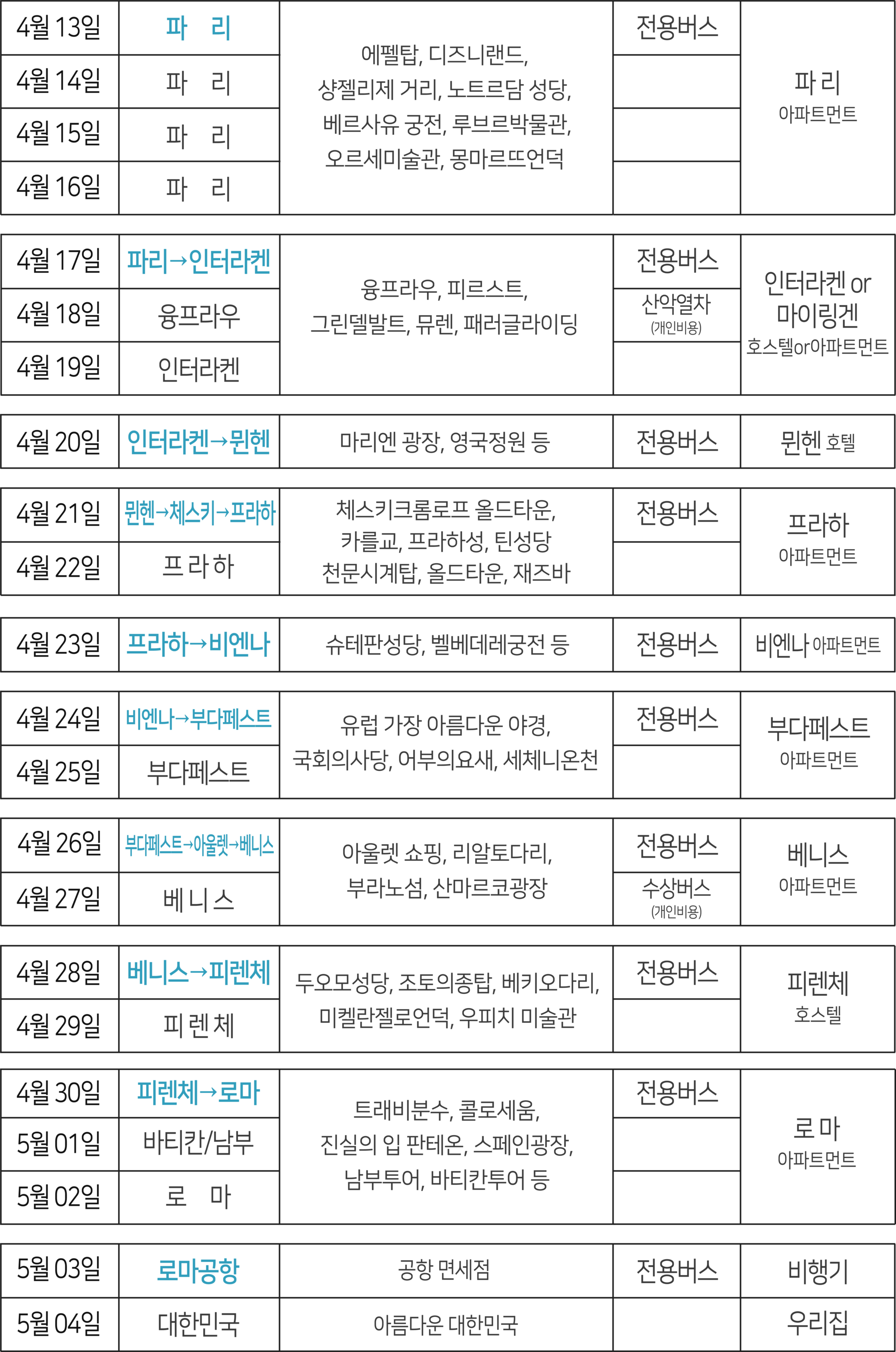 또한 패키지여행처럼 도시이동은 버스로 안전하고 편하게,
