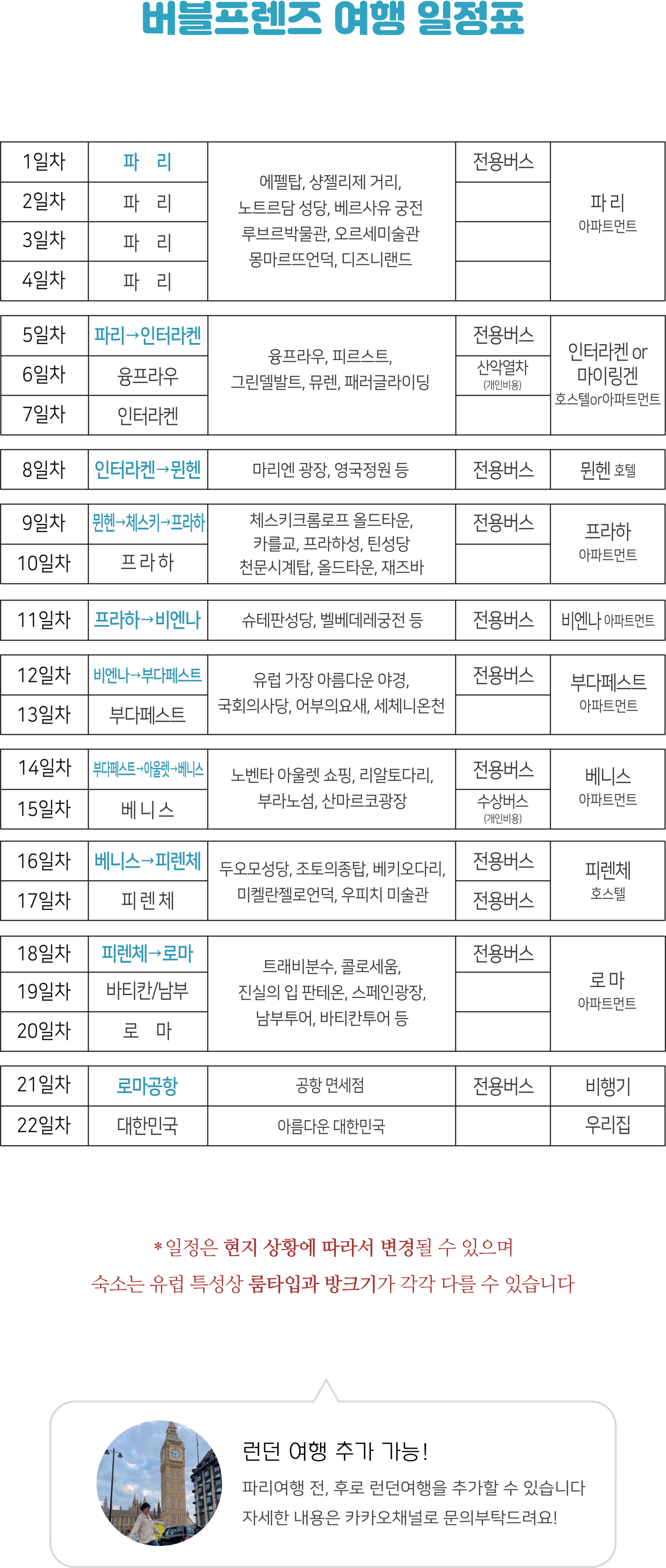 버블프렌즈 유럽여행은 어떻게 다른가요?