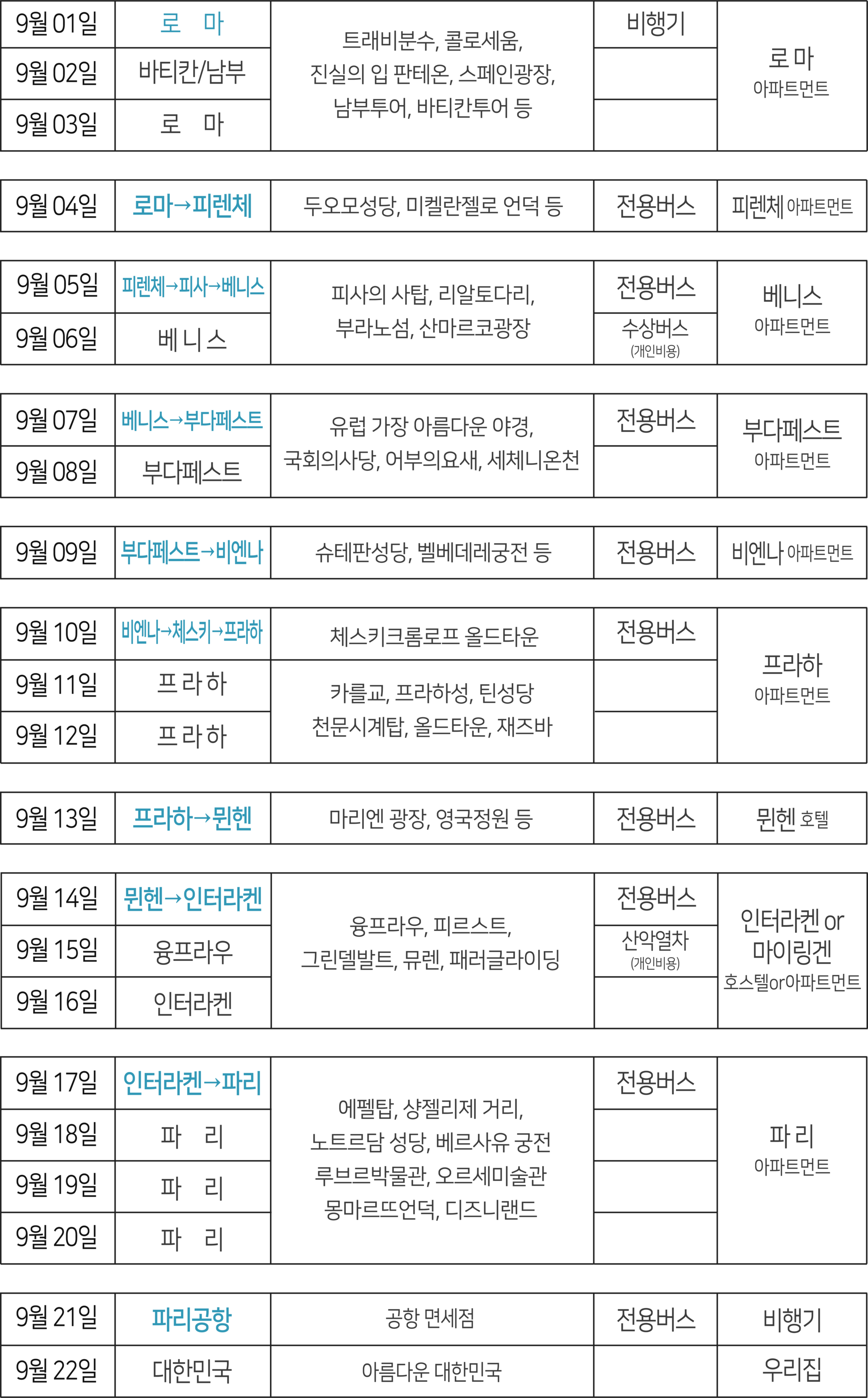 또한 패키지여행처럼 도시이동은 버스로 안전하고 편하게,