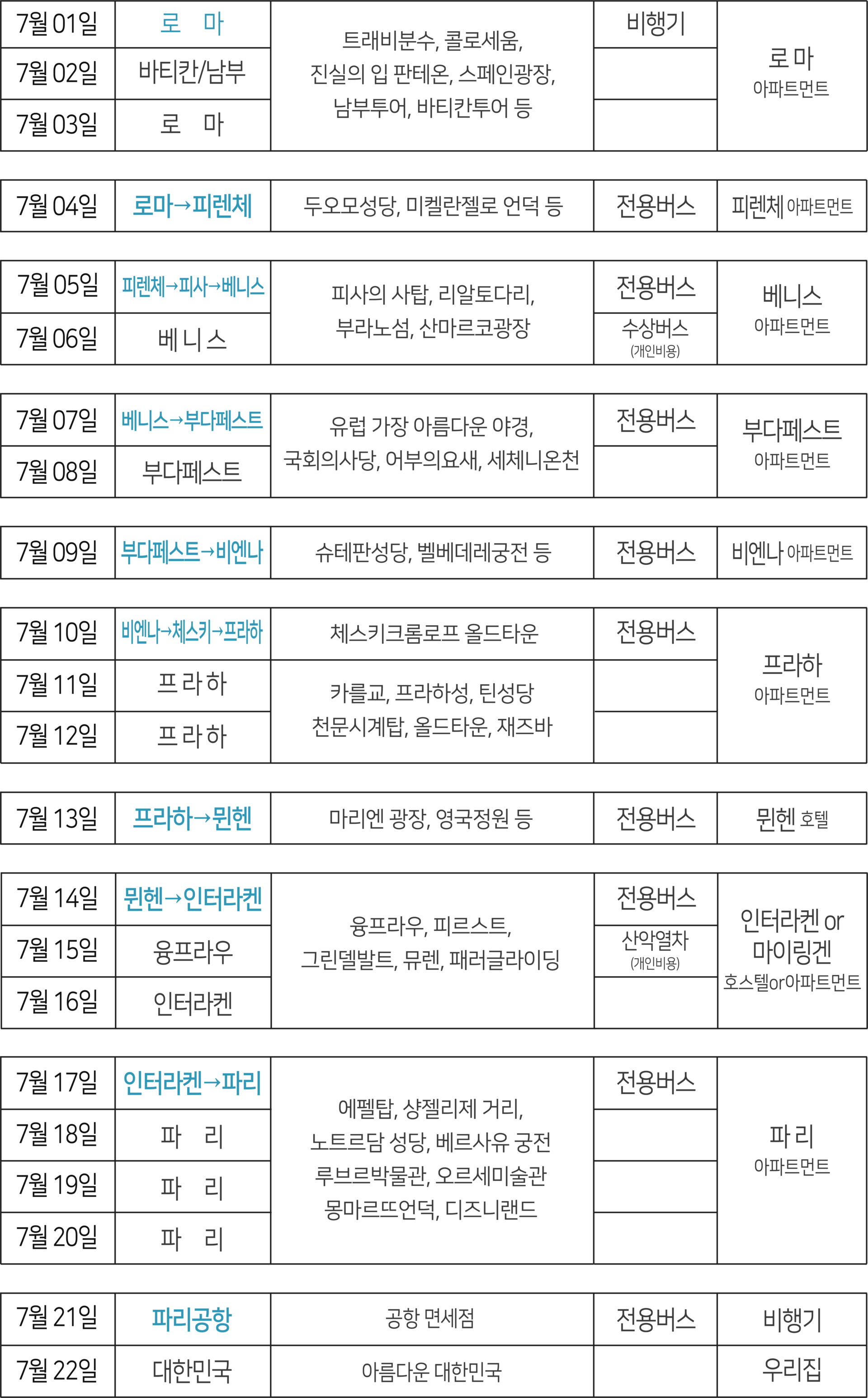또한 패키지여행처럼 도시이동은 버스로 안전하고 편하게,