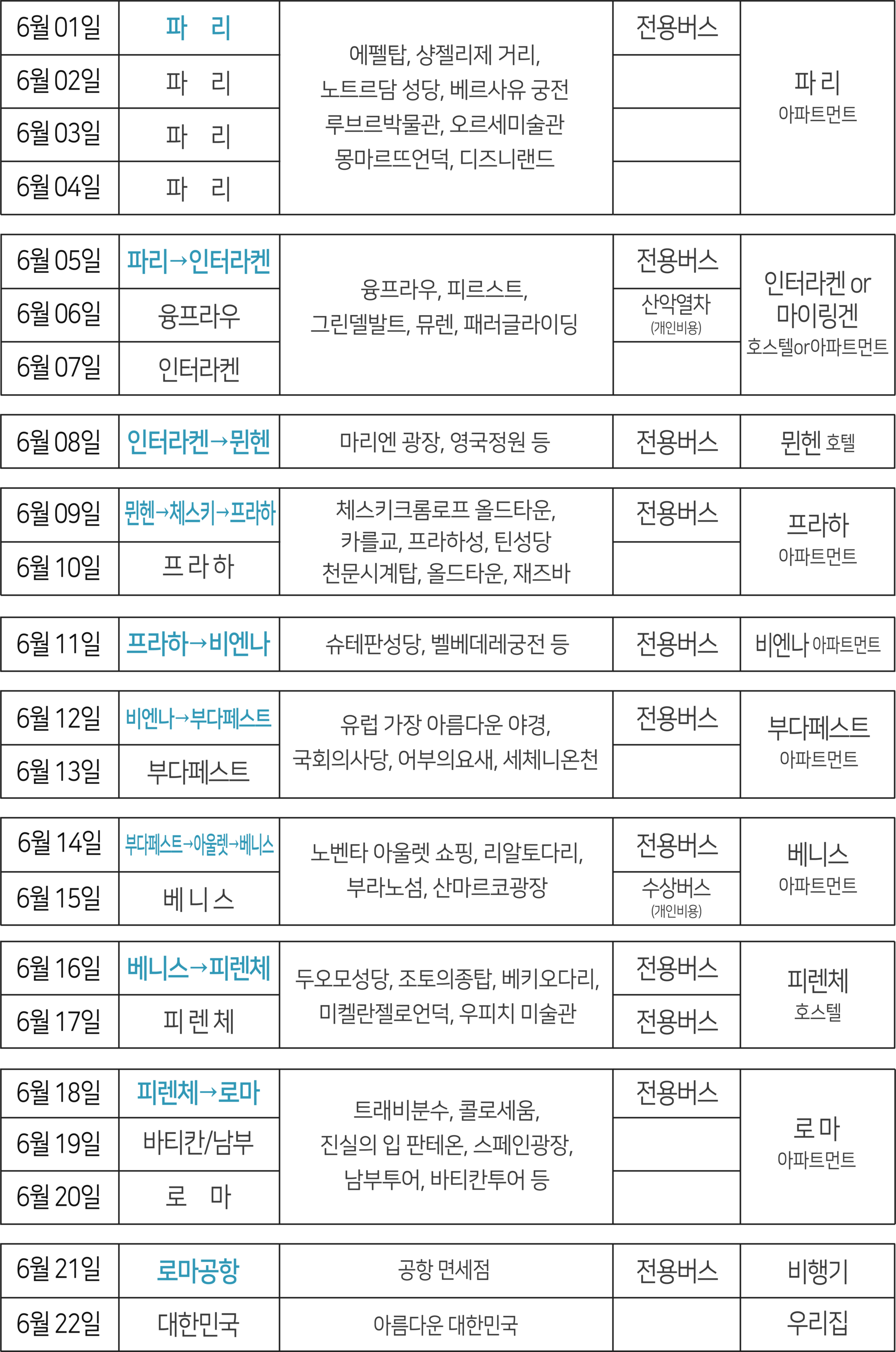 또한 패키지여행처럼 도시이동은 버스로 안전하고 편하게,