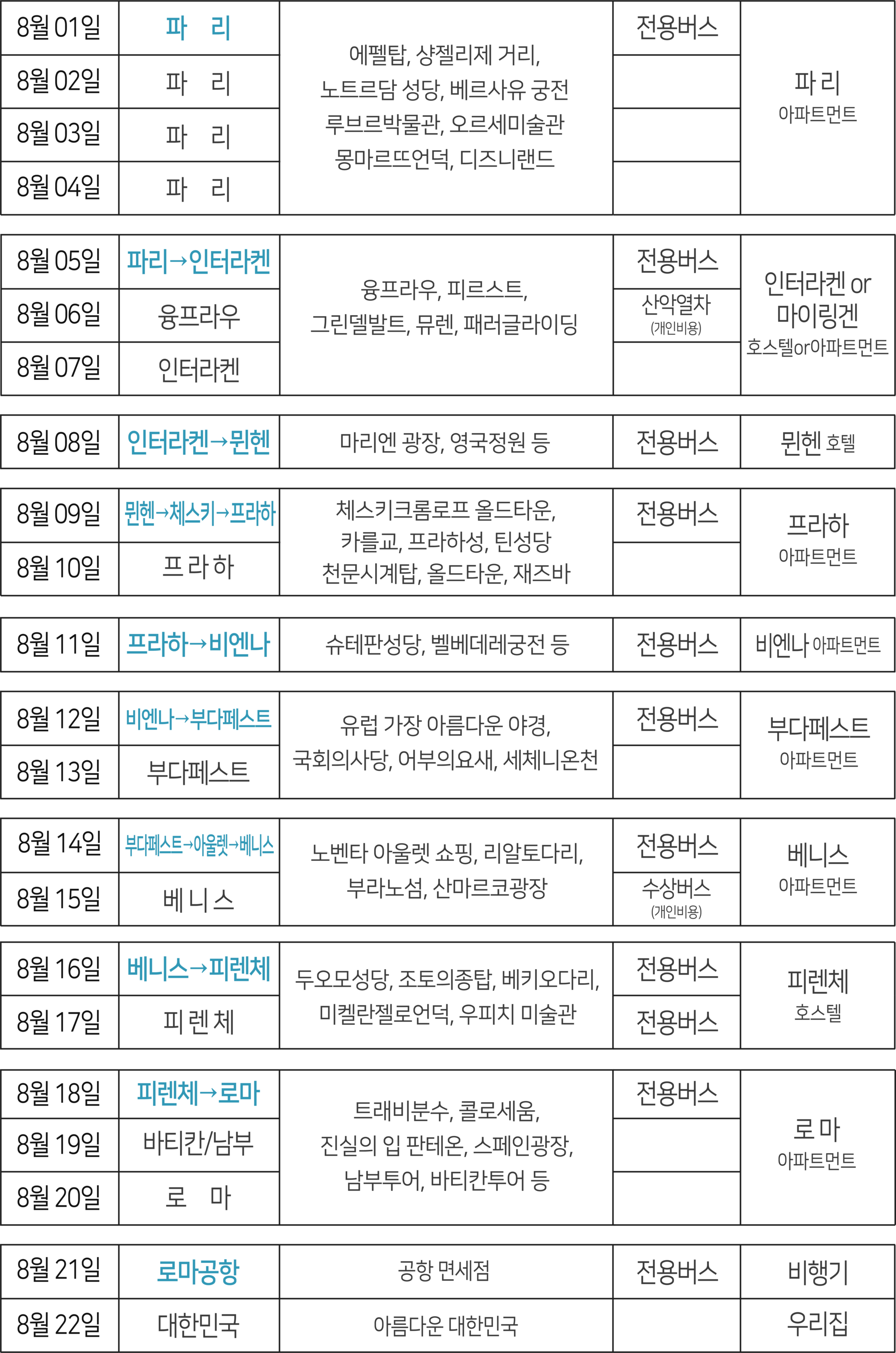 또한 패키지여행처럼 도시이동은 버스로 안전하고 편하게,