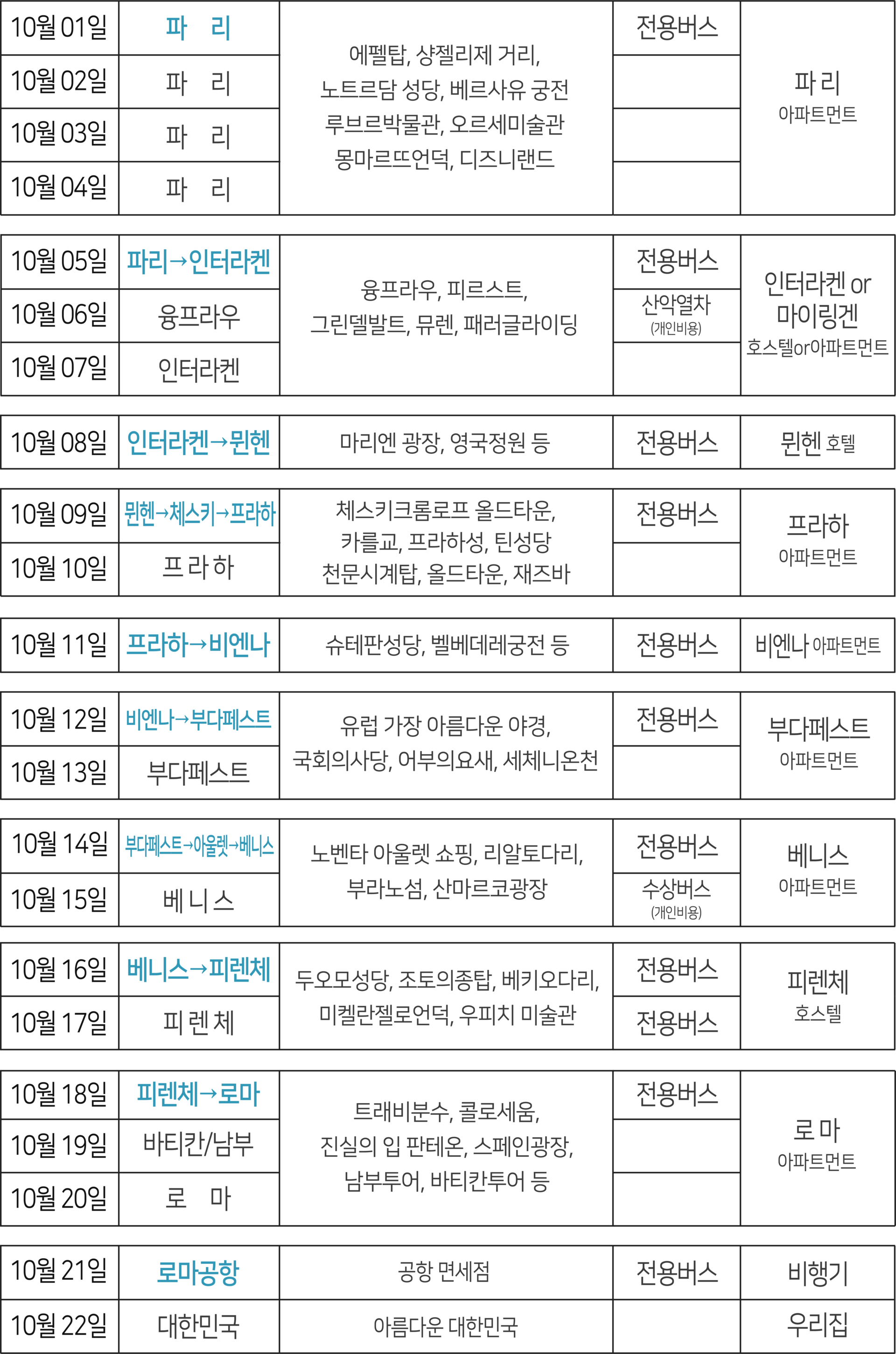 또한 패키지여행처럼 도시이동은 버스로 안전하고 편하게,