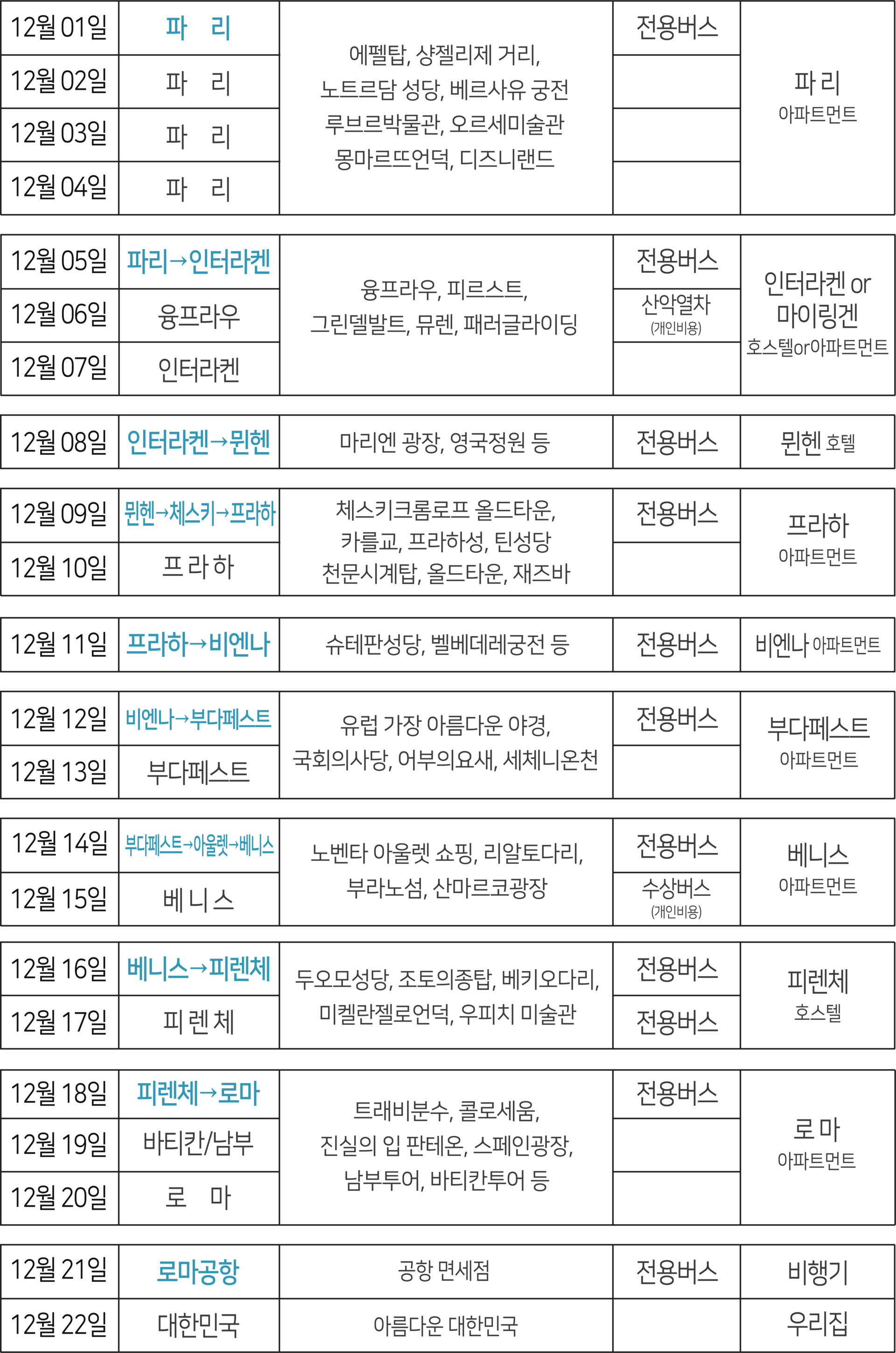 또한 패키지여행처럼 도시이동은 버스로 안전하고 편하게,