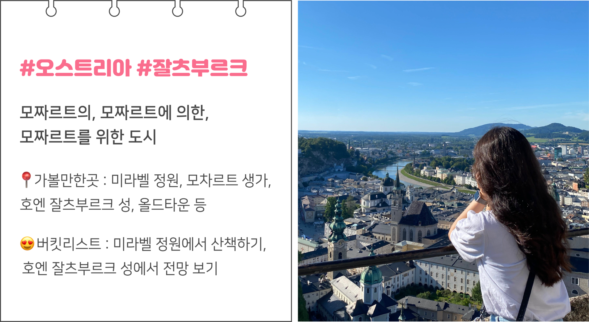 프라하(2박) ▷ 잘츠부르크(1박)  ▷ 할슈타트 ▷ 비엔나(1박)
