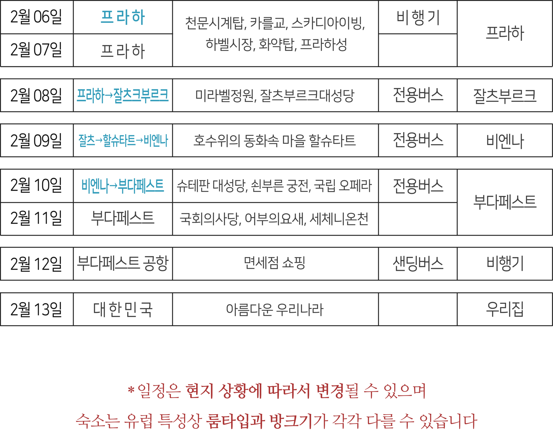 * 전 일정 숙소(시티택스포함) 및 이동이 포함된 가격입니다